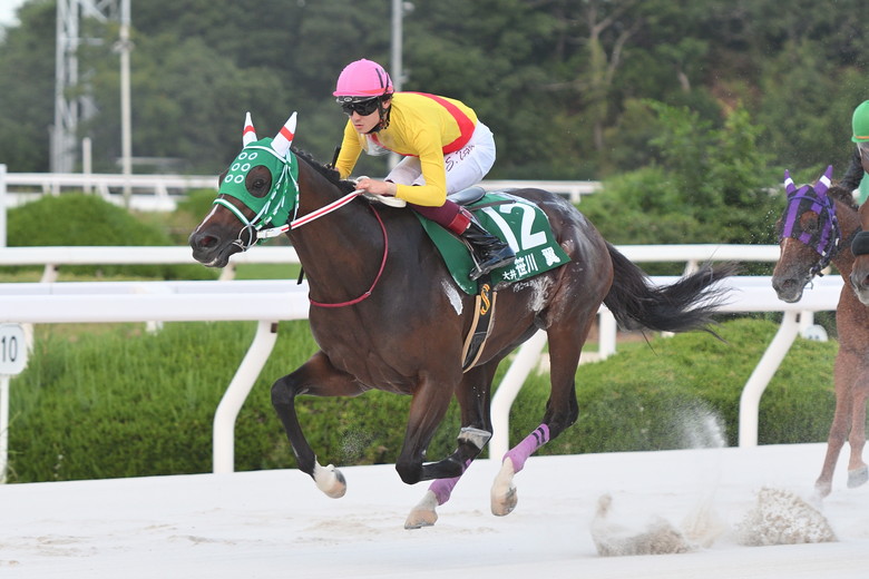 レースは3番手でレースを進めた笹川騎手&タンバブショウが3コーナー過ぎで堂々と先頭に立ち、そのまま力強く押し切った。兵庫の下原理騎手が猛追して2着、小牧騎手が後方から伸びて3着に食い込んだ。笹川騎手は言う。