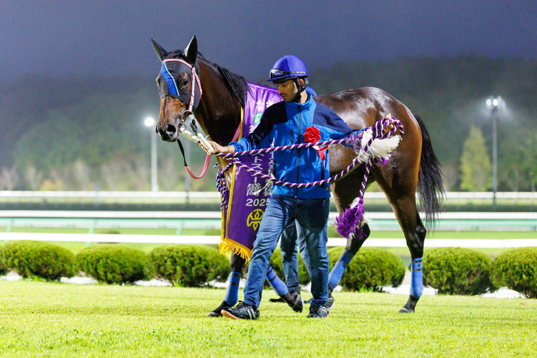 1番人気に応えて快勝したラウダーティオだったが、板垣吉則調教師はスッキリしない表情。「ゲートのこともあるので次走以降については未定だね」とコメントしたが、横川典視氏が「来年ですが、北海道スプリントカップなんかが合うんじゃないですか」と振ると「それもありかも」と笑顔を見せて答えた。