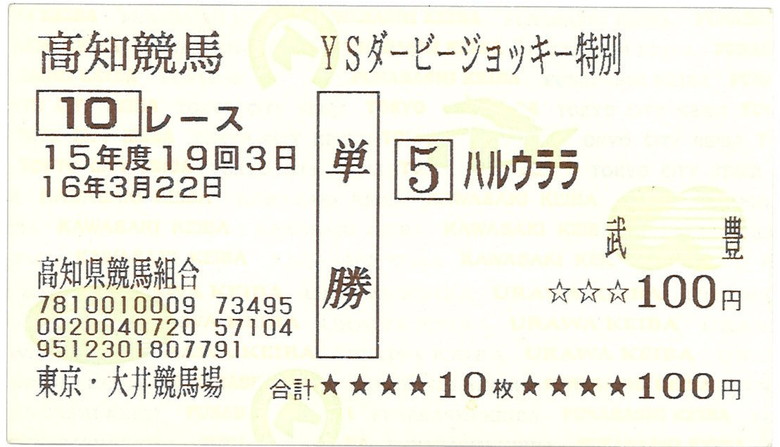 この日の総売上は、高知競馬レコードの8億6904万2500円。YSダービージョッキー特別の売上5億1162万5900円は、1レース単体の売上として高知競馬レコード。ハルウララの単勝だけで、★1億2175万円★も売れた。