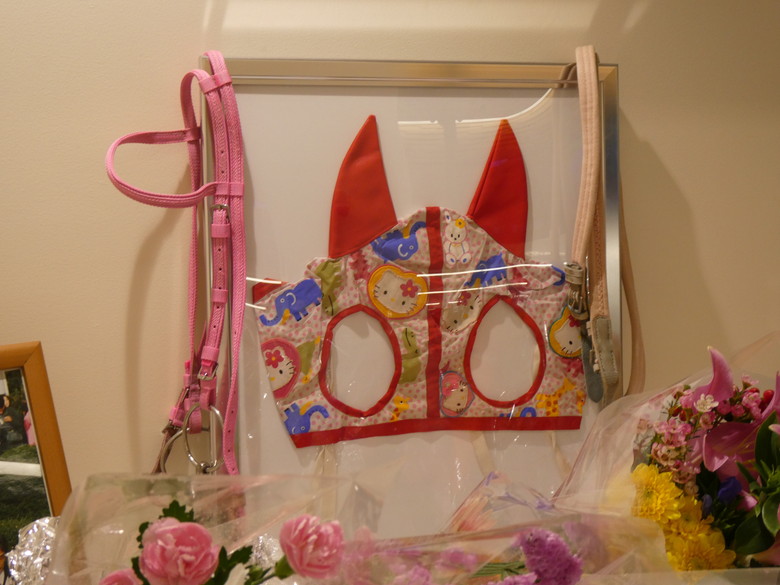 献花台にはハルウララが着けていたキュートなメンコが飾られた。宗石調教師が縫い付けたというキティちゃんのアップリケを見て、懐かしさがこみ上げた。あの頃、潰れかけていた高知競馬は大逆転を果たして、売上を伸ばし続けている。2024年度の売上は約999億円余り(1日あたり約9億2千500万円)。2025年度は、もしかすると1000億円を突破するかもしれない。ハルウララと、ハルウララを取り巻く人たちに感謝を伝えたい。高知競馬の未来を繋いでくれてありがとう。すったもんだを乗り越えて、マーサファームでのびのびと幸せそうに暮らす姿を見せてくれてありがとう。
