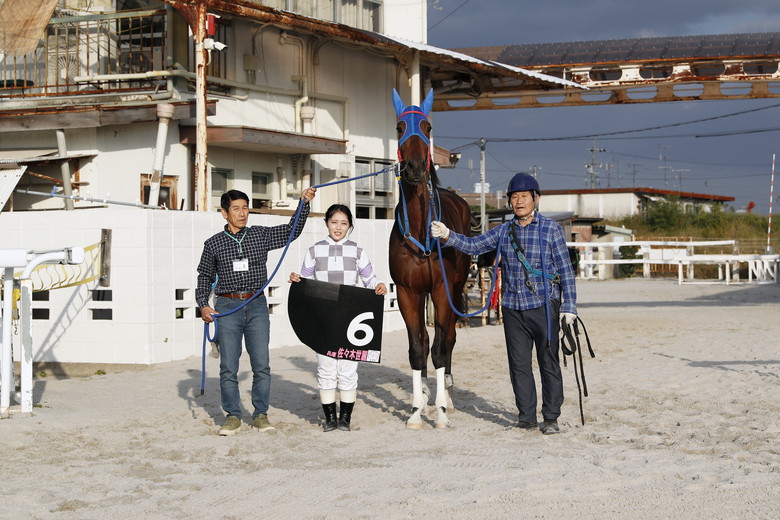 馬が体力を消耗した塩津騎手が後退し、佐々木・深澤両名の粘り合いとなった最後の直線では、内目4番手で機を窺っていた小笠原騎手がそのまま内を回って迫り、争いに加わる。最後は3頭の接戦を凌いだ佐々木騎手が勝利をもぎ取った。小笠原騎手は3/4馬身差の2着。「もう少し道中折り合いをつけて乗れたら、勝てたんじゃないかと思う」と振り返る深澤騎手はクビ差3着で、悔しそうな表情を浮かべた。
