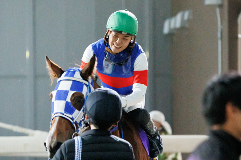 野畑凌騎手は「成長力がすごいです。一戦毎によくなっていてまだまだ底が知れません。後ろ脚の推進力、加速力は相当な武器ですね。将来がめっちゃ楽しみです!僕もこの馬のファンの一人なんで!」と笑顔が溢れた。