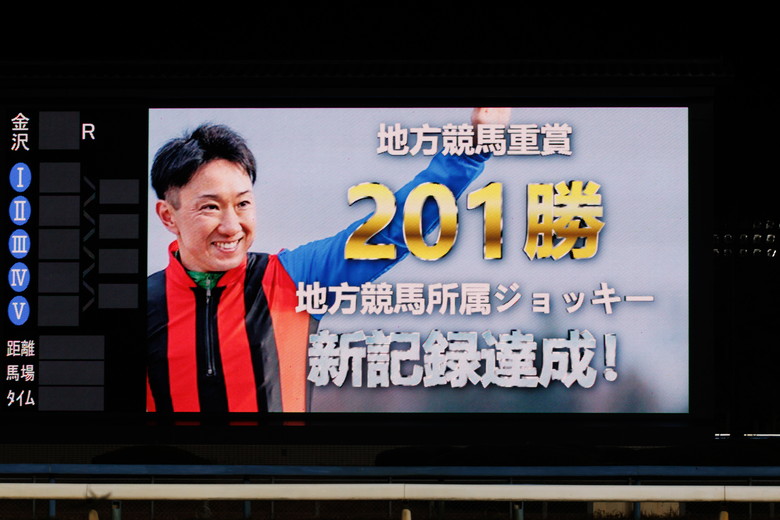 それでも12月3日に大井の勝島王冠を渡邊和雄厩舎のキングストンボーイで制し、200勝。続いて翌週、7日にはクーアフュルストで中日杯を勝ち、ついに201勝目。地方所属騎手による地方重賞最多勝記録の更新は、所属する加藤和義厩舎の馬で達成された。勝利インタビューで見せた、どこかホッとした表情に大記録と向き合った日々への思いが感じられた。
