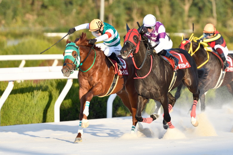 三冠を賭けて戦ったジャパンダートダービーJpnIは降りしきる雨の中、最後、カゼノコの末脚にハナ差屈した。