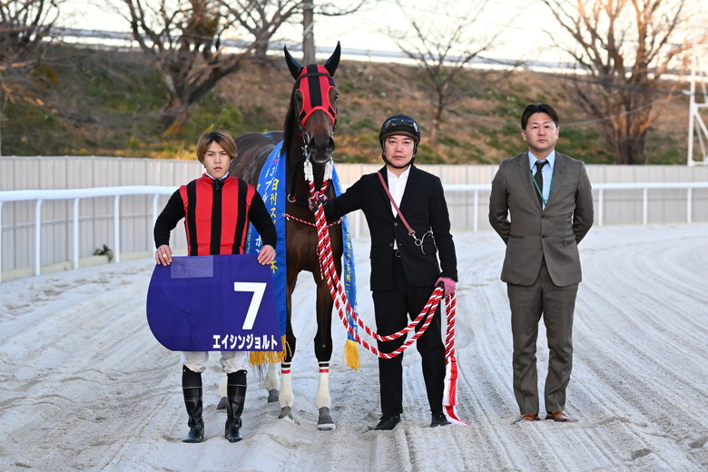 その例外となったのが、シンリンゲンカイの直後を進んでいたエイシンジョルト。向正面の中央付近で先頭に立ち、4コーナーで内からシンリンゲンカイが再び並んでくると、塚本征吾騎手のアクションがさらに大きくなった。その叱咤に応えたエイシンジョルトが1馬身差で競り落として勝利。スマートアンバーは3馬身差の3着だった。