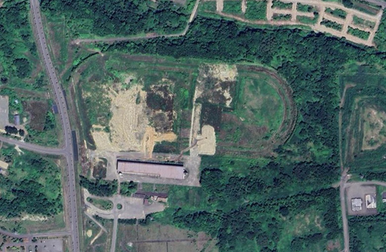そこで再びGoogle空中写真を見た。敷地の西どなりには南北に走る一般道路、南側には入場門と駐車場があったが、それ以外は林に囲まれていた同競馬場。空中写真からも、それら周囲の様子に大きな変化はなさそうに感じられる。