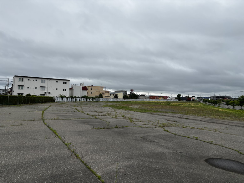 帯広競馬場の土地は十勝農業組合連合会(十勝農協連)が所有している。同会のビルと駐車場が一般道路を挟んで空き地とは反対の西側にある。それらも一般道路も、帯広がばんえい専門の競馬場になった後、最近になってできたものだ。一般道路は同会が所有する土地の一部を提供して建設された。今のところ、その東側の半月状の土地に何かができる気配はない。今後しばらくは周回コースがあった頃の面影を見ることができるだろう。もちろん、今の競馬場のスタンドは当時から使われている建物だが・・・。