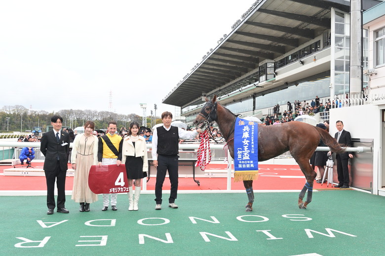 メモリアカフェはこの中間からハミをリングハミからジェーンビットに変更。初勝利を挙げた頃から右にモタれる面があったものの、これまではレースで力を出せていたため大きく踏み込んだ変化はつけずにいた。ところが「前走・クイーン賞3着の負けが私の中で引っ掛かる部分がありました。色々と試した結果、これが一番(モタれる面が)軽減されました」と柄崎将寿調教師。勝因は他にもあった。前走は序盤で力みが見られたが、この日は4カ月ぶりの前走を使ったことで上積みと落ち着きが見られた。それら全てが噛み合っての古馬重賞初制覇となった。