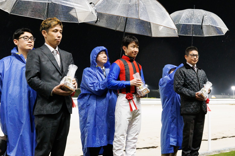 2着には、道中後方2番手追走から追い上げたゴーゴーツヨシ(兵庫)が食い込んだ。主戦の小牧太騎手が負傷療養中で、騎乗予定の大畑雅章騎手も前日の落馬で負傷し、この日急遽白羽の矢が立ったのが名古屋の若手・細川智史騎手だった。「当日騎乗が決まり、過去のレース映像も見ることができなかった」そうだが、「発走までの間、調教師、助手、厩務員、皆さんがこの馬の全てのことを教えてくれた。おかげで何の不安もなく騎乗することが出来た」と振り返る。