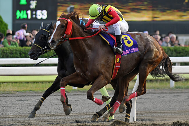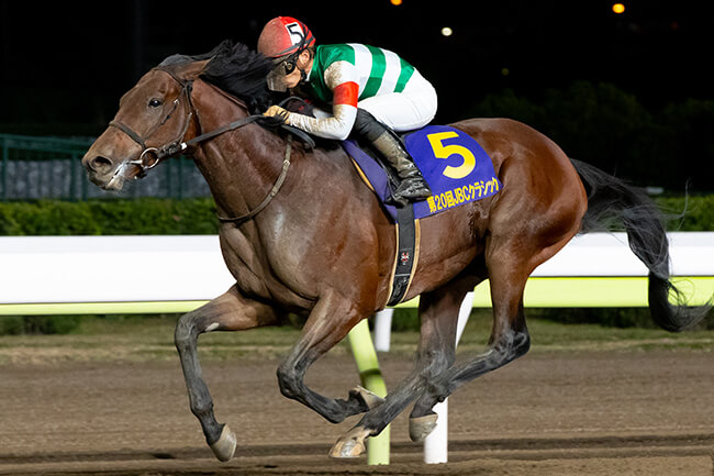 今日は日本のダート界でいちばん強い馬たちが集まっていましたから、そのなかでいいレースができました。早めに抜け出すと走るのをやめる面があるところだけは心配していましたが、走りはいつものアウォーディーらしくて、安心して見ていられましたね。ジョッキーがうまく乗ってくれました。