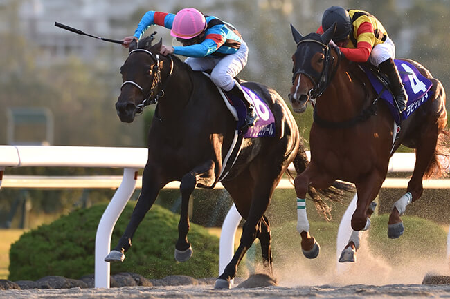 第16回となる今年のJBCは28,718名の入場者を集め、1日の勝馬投票券の売得金額が地方競馬歴代1位となる48億7402万2850円を記録、JBCクラシックとレディスクラシックの売得金額も、昨年の大井を上回るレコード。要因は、好メンバーが集まったことといえるだろう。 その舞台はコーナー6回の2100m。GI/JpnIの優勝回数でトップを目指すコパノリッキーにとっては初めての距離だが、前走のマイルチャンピオンシップ南部杯JpnIで日本レコードに迫る圧勝をみせたそのスピードは、ここでも1番人気として信頼された。 ホッコータルマエはその記録で追われる立場ではあるが、単勝では3番人気。逆に1番人気に迫る注目を集めたのが、ダートに転じて5連勝中のアウォーディーだった。この3頭に加えてノンコノユメまでが単勝10倍未満。そのあとはサウンドトゥルーが14.6倍、クリソライトは47.5倍という分布になった。 それらの強敵たちに真っ向勝負を挑んだのが、船橋所属のサミットストーン。スタート後、先手を取ったホッコータルマエを交わし、単騎逃げの態勢に持ち込んだ。ホッコータルマエはそれを見て2番手に下げ、その後ろにイッシンドウタイ、コパノリッキーなどが追走。アウォーディーも先行グループに加わっていった。 1周目スタンド前での隊列には落ち着きがあったが、再び向正面に入ると勝利を狙う争いは一気に活気を帯びてきた。コパノリッキーはホッコータルマエをターゲットに動き出し、その背後からアウォーディーも仕掛けていく。3コーナー過ぎでは上位人気3頭が先頭争いをする構図になったが、外を回ったアウォーディーの勢いは、遠くから見ていても一枚上のものがあった。 結果、アウォーディーがゴール前200m付近で先頭に立って押し切り勝ち。その姿には、この日いちばんの歓声がわき起こった。 それを見届けた前田幸治オーナーは「次はチャンピオンズカップ。来年はラニと一緒にドバイに行きたいね」と満足げな表情で宣言。まさに夢が広がる勝利になった。 3/4馬身差で2着だったホッコータルマエの鞍上、幸英明騎手は「今日は展開的にちょっと厳しかったですね」とのこと。それでも「残り2戦(チャンピオンズカップGI、東京大賞典GI)、がんばります」と気を取り直していた。 しかしながらアウォーディーの勢いは、他の陣営も一目を置かざるを得ないことになったようだ。 3着に入ったサウンドトゥルーを管理する高木登調教師は「ウチの馬もすごく良くなっていたけれど……、強いね」と、悔しさよりもその走りに感心した様子。5着に敗れたコパノリッキー鞍上の田邊裕信騎手も「コーナー6回のコースで馬が少し力んだところはありましたが、今回は相手が上でした」と振り返った。チャンピオンズカップGIは適条件といえるコーナー4回の1800m。巻き返しを狙ってくるはずだ。 4着に食い込んだノンコノユメを管理する加藤征弘調教師は「去勢して走りの反応がよくなりましたね。次は中京。これからどんどん行きますよ」と、笑顔を見せていた。 12月に控えるトップホースたちの戦いには、おそらくモーニンなども加わってくることだろう。輪をかけてハイレベルになっていくダート界の頂点をめぐる争い。その行方が今から楽しみだ。
