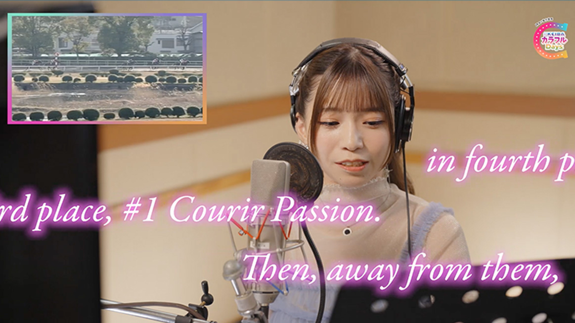 スタジオに置かれたマイク1本の前に立ち、過去のレース実況に挑戦。