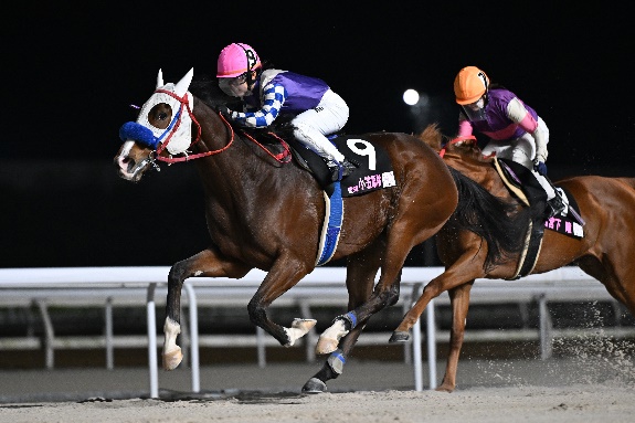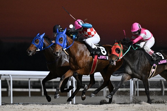 ダート1,400mで行われた第1戦は、深澤杏花騎手(笠松)が騎乗したベアショットがゴール直前で外から差し切って勝利。2着に塩津璃菜騎手(兵庫)騎乗のスターライトナイト、3着は中島良美騎手(浦和)騎乗のオレイニウタイマスが入りました。