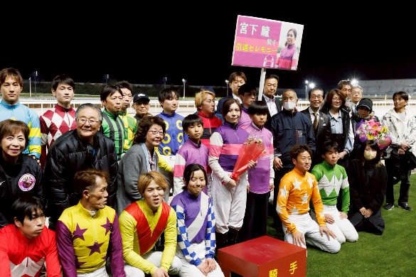 女性騎手の第一人者として活躍してきた宮下瞳騎手(愛知・宇都英樹きゅう舎)は、2025年12月1日(月)付で調教師免許を取得することとなり、本日の11月26日(水)名古屋競馬第6競走が最終騎乗となりました(7/12着)。その後引退記念セレモニー、引退記者会見が行われました。