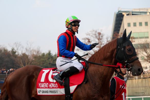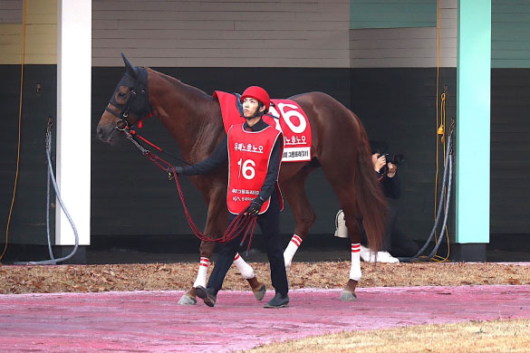 11月30日(日)、韓国・ソウル競馬場で行われたグランプリ(左・2,300m)に参戦したユメノホノオ(牡5・高知・田中守厩舎)は、道中は好位につけて直線に向くと、そこから脚を伸ばすも、前を捕らえるまでには至らず4着(16頭立)という結果となりました(優勝馬:CLEAN ONE)。同馬にとっては春のYTN杯(3着)に続き2度目の韓国遠征。今回も残念ながら優勝には届かなかったものの、再び韓国のトップホースと互角のレースぶりを見せてくれました。