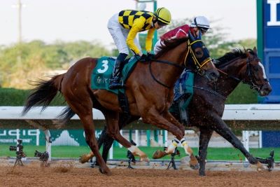 2月14日(土)にサウジアラビアのキングアブドゥルアジーズ競馬場で行われたサウジダービー(G3・左1600m)に出走したベストグリーン(牡3・北海道・田中淳司厩舎)は、果敢に先行するも、直線で脚を伸ばすことは出来ず、9着となりましたのでお知らせします。(優勝馬:アルハラム)